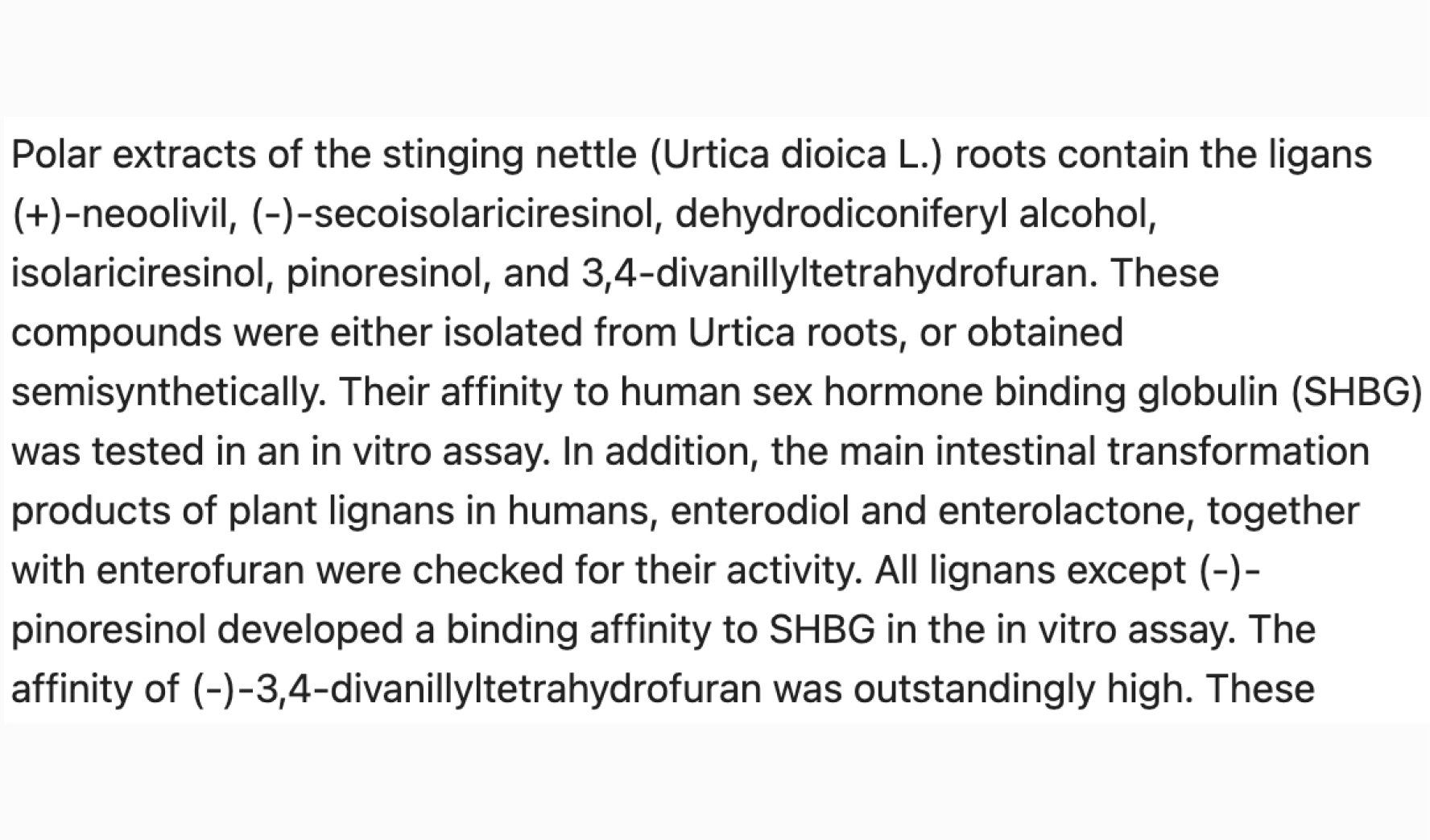 Lignans in Nettle have shown to clearly regulate SHBG, thereby optimising free estrogen where needed in women